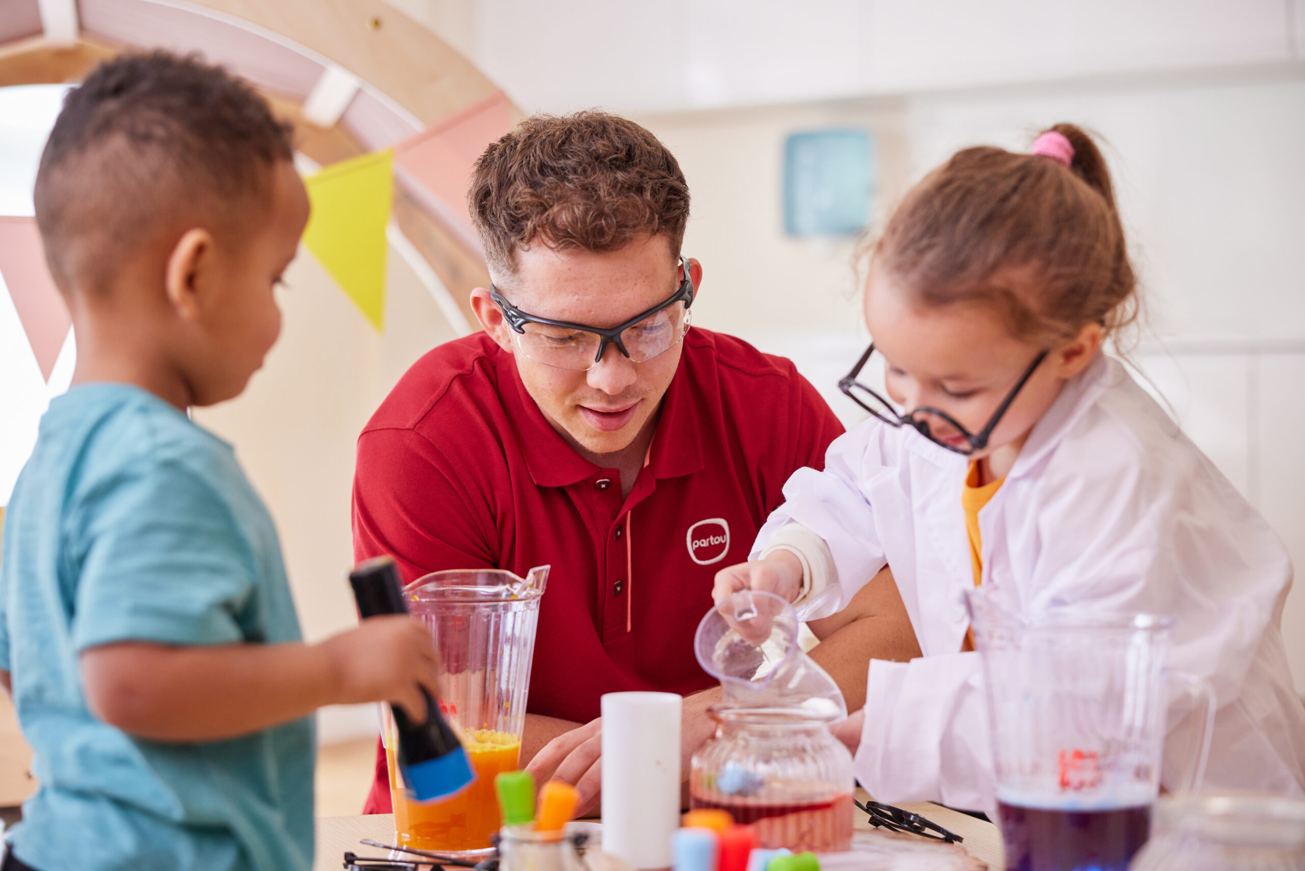 Providing children with opportunities to push, pull, jump, swing, climb, dance, get dressed, paint, mark make, draw and explore playdough are things that support the later development of writing. These are all things that children have ample opportunities to practice whilst at a Partou nursery.