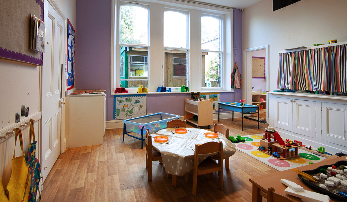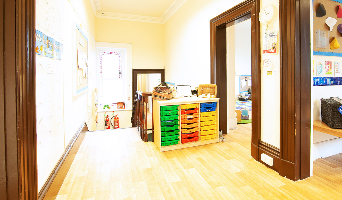 This historic building has tons of character and original features such as the patterned  flooring and old work house bells which spark curiosity and wonder in children. Our rooms are large open spaces with high ceilings and big windows which provide a light and airy environment which is perfect for early years learning and creativity. Older children have access to multiple rooms such as reading and home corners as well as a creative room which they can move around freely according to their interests.