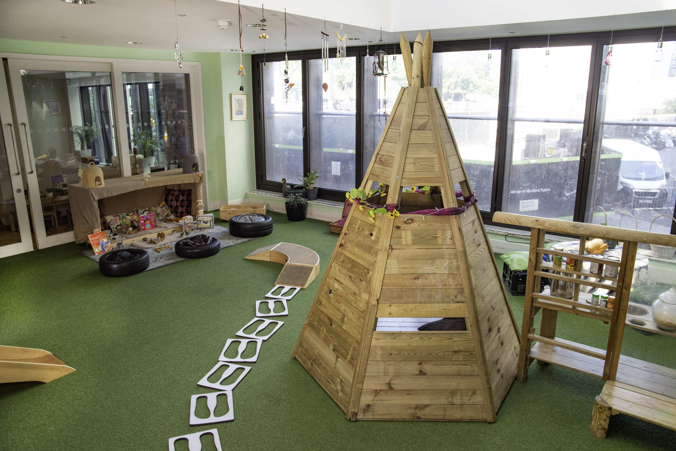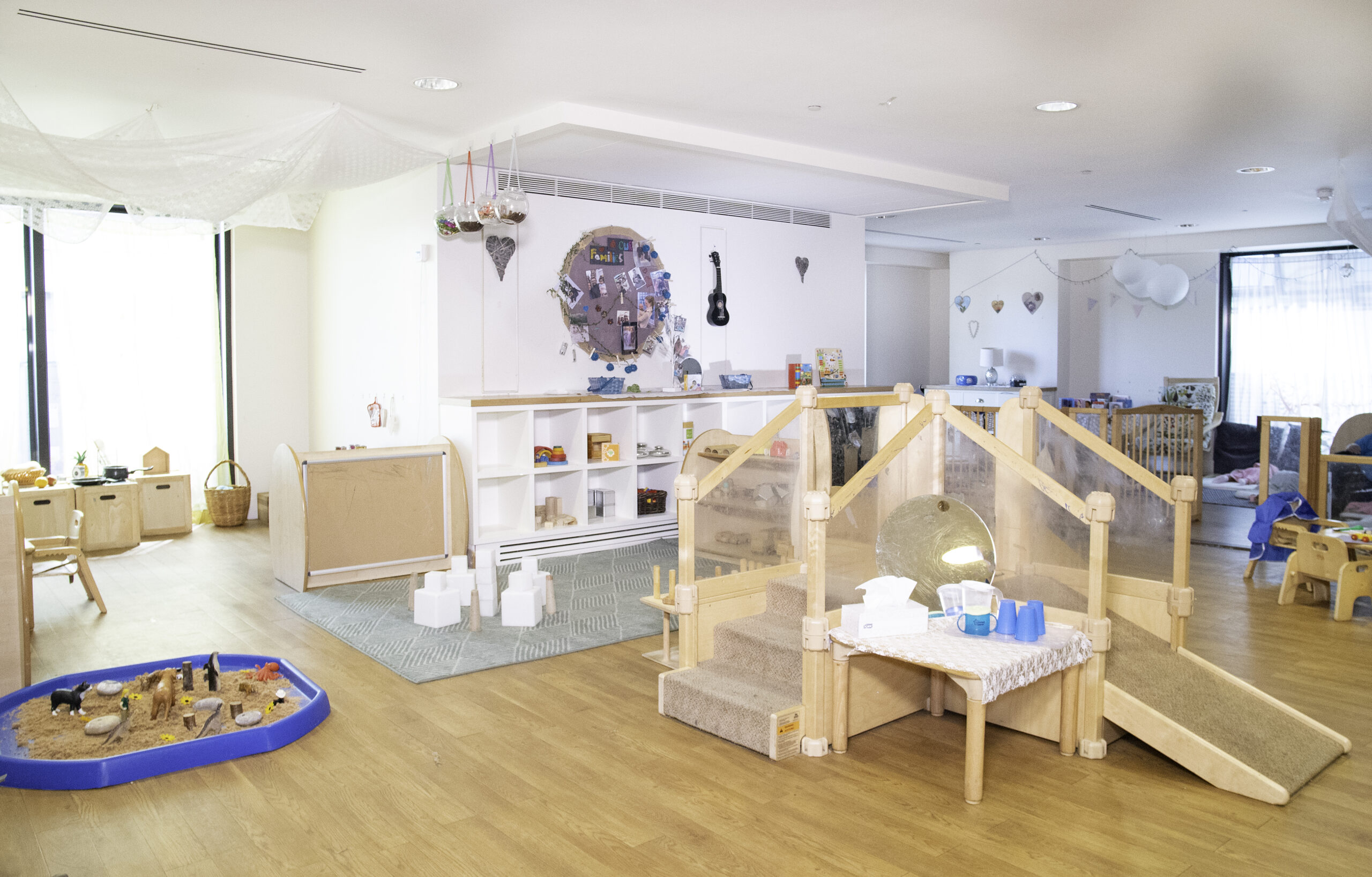 A purpose-built building with bright, spacious playrooms that create a warm, inviting atmosphere