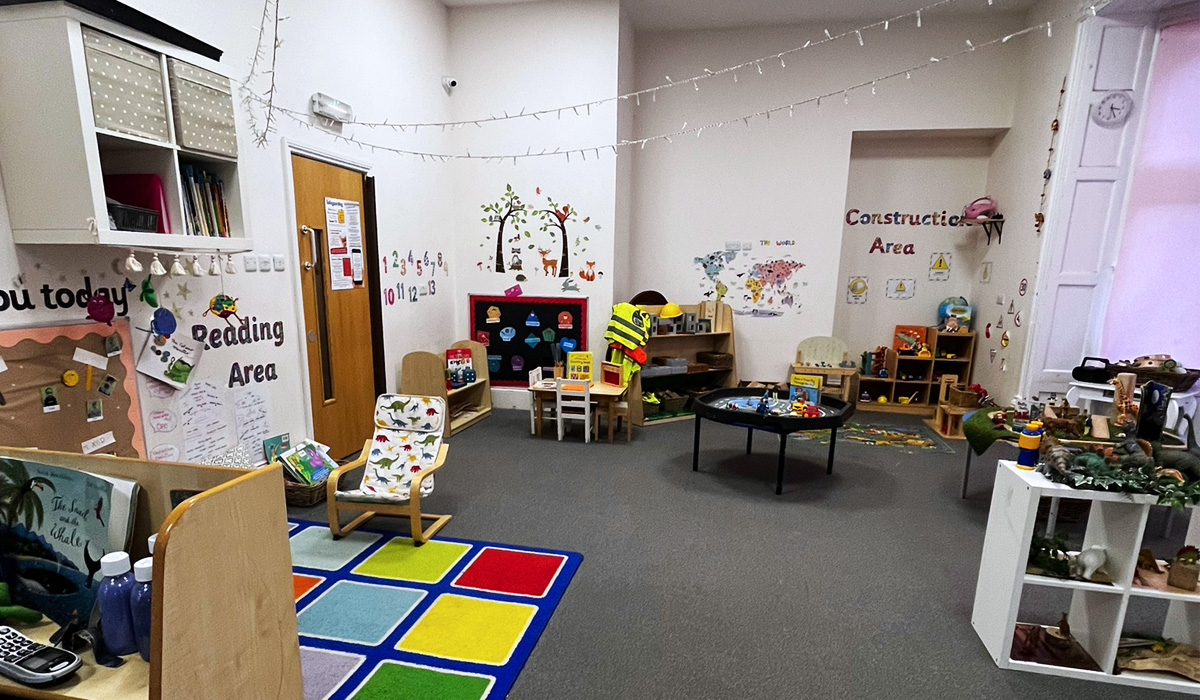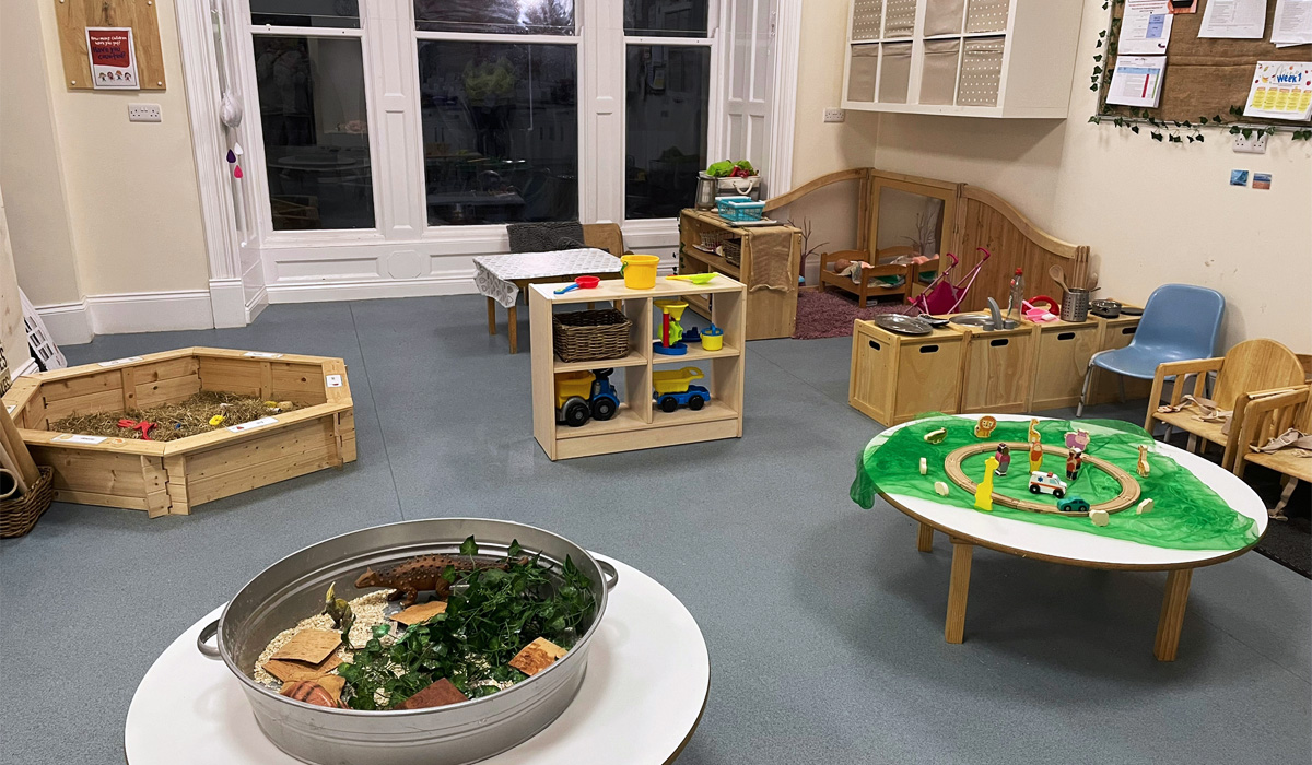 Large spacious playrooms in a converted Victorian house which offers a welcoming ‘home from home’ atmosphere